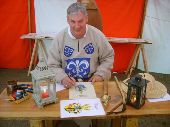 Kinder dürfen Wappen und mittelalterliche Miniaturen malen.
